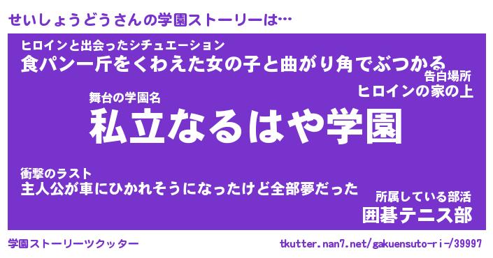 | 告白場所 先生の家の上 …「ふぃぎゅこ」 | 2月17日 06:24 |