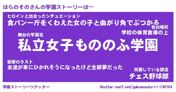 | 男性向けラノベタイトル風あだ名 | 『ハラノソノアートオンライン』 |