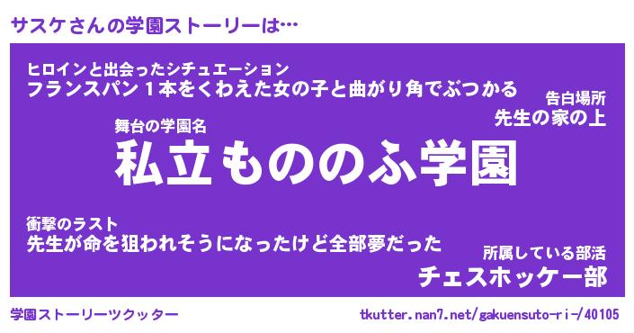 | 女子向けラノベタイトル風あだ名 | 『(仮)サスケのやんごとなき事情』 |