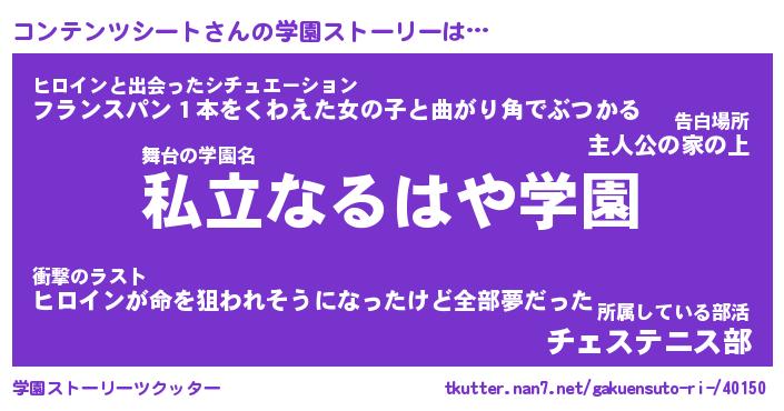 | 男性向けラノベタイトル風あだ名 | 『コンテンツシートの憂鬱』 |