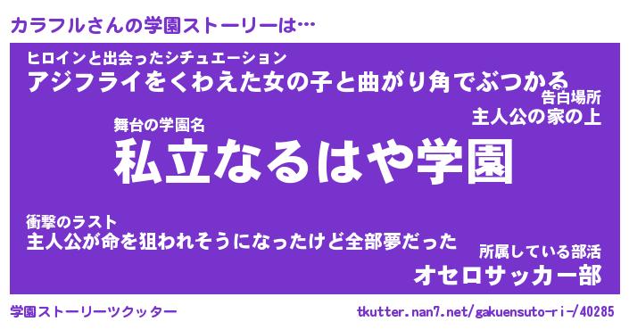 | ファンタジー風あだ名 | 『カラフェル』『エターナルカラフルー』 |