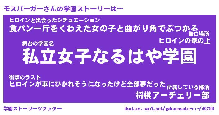 | 男性向けラノベタイトル風あだ名 | 『モスバーガーアートオンライン』 |