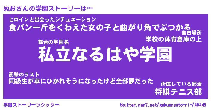 | 伝説のあだ名 | 『伝説のスナイパーぬお』 |