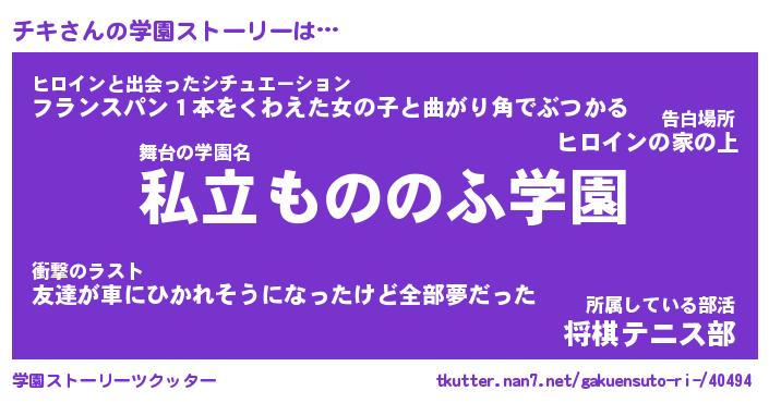 | 男性向けラノベタイトル風あだ名 | 『チキの憂鬱』『ノーゲーム・ノーチキ』 |