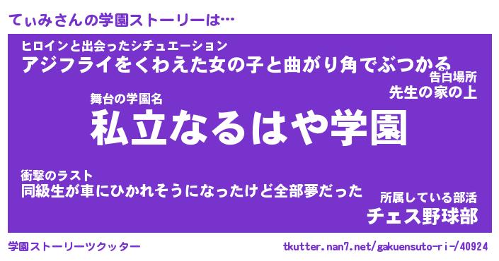 | 告白場所 先生の家の上 …「ふぃぎゅこ」 | 2月17日 06:24 |