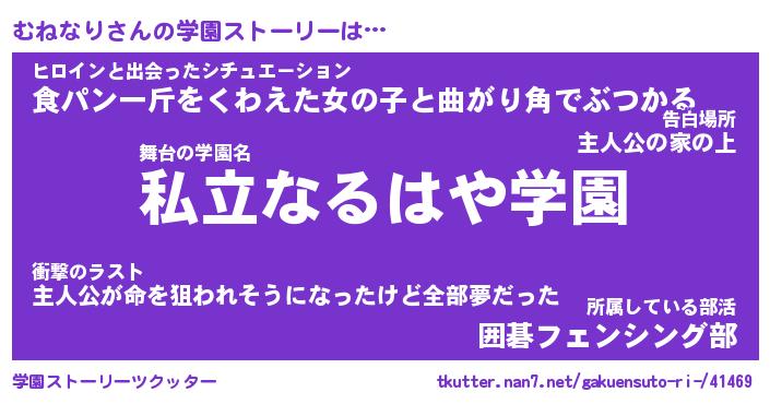 | 男性向けラノベタイトル風あだ名 | 『むねなりの憂鬱』 |
