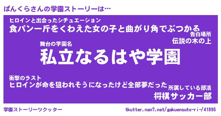 | ファンタジー風あだ名 | 『バンフェル』『エターナルバンクラー』 |