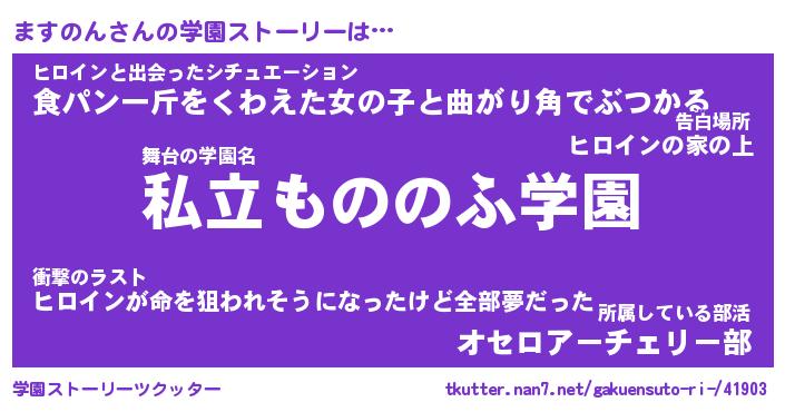 | 男性向けラノベタイトル風あだ名 | 『ますのんの憂鬱』 |