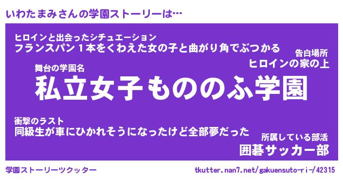 | ファンタジー風あだ名 | 『イワフェル』『エターナルイワタマミー』 |