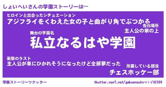 | 男性向けラノベタイトル風あだ名 | 『しょいへいの憂鬱』 |