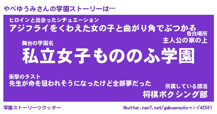 | ヒーロー風カッコイイあだ名 | 『スーパーヤベユウミ』『魔戒騎士ヤベ』 |