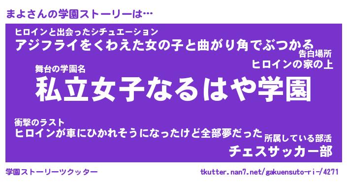 | 告白場所 先生の家の上 …「ふぃぎゅこ」 | 2月17日 06:24 |