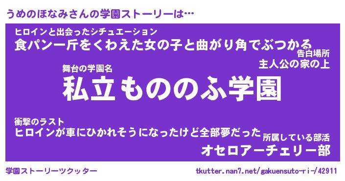 | 女子向けラノベタイトル風あだ名 | 『うめのほなみ姫と円卓の騎士』 |
