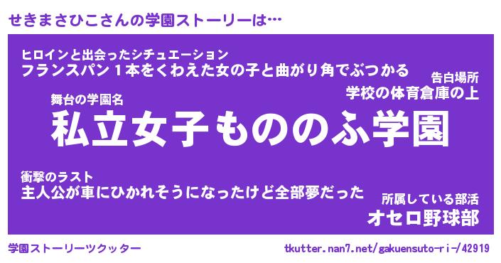 | ヒーロー風カッコイイあだ名 | 『スーパーセキマサヒコ』『幻影騎士セキ』 |