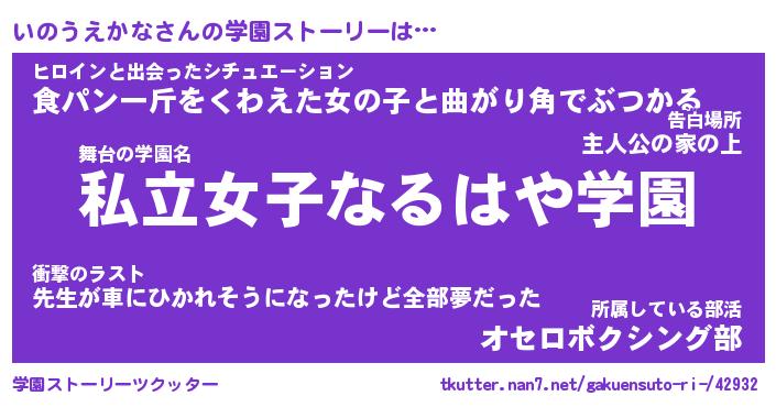 | ヒーロー風カッコイイあだ名 | 『スーパーイノウエカナ』『暗黒騎士イノ』 |
