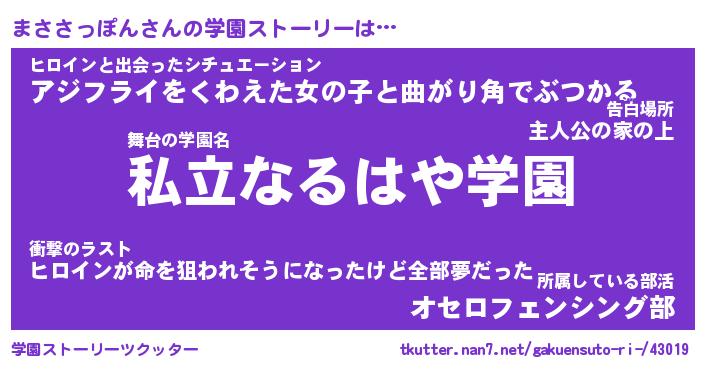 | 告白場所 先生の家の上 …「ふぃぎゅこ」 | 2月17日 06:24 |