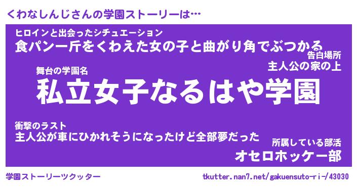 | 男性向けラノベタイトル風あだ名 | 『クワナシンジアートオンライン』 |