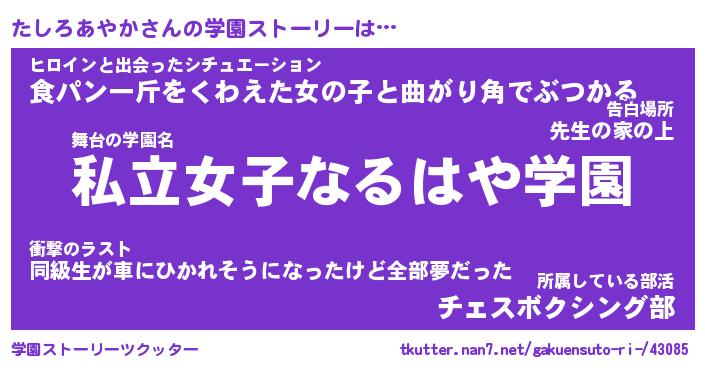 | 告白場所 先生の家の上 …「ふぃぎゅこ」 | 2月17日 06:24 |
