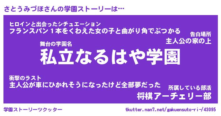 | 男性向けラノベタイトル風あだ名 | 『さとうみづほの憂鬱』 |