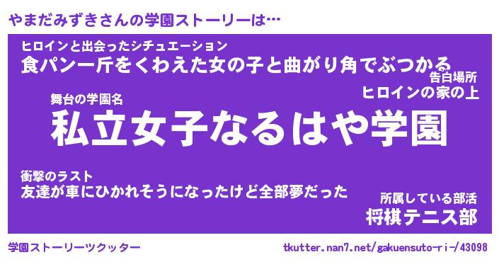 | 告白場所 先生の家の上 …「ふぃぎゅこ」 | 2月17日 06:24 |