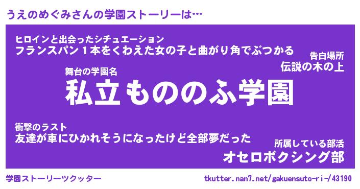 | 男性向けラノベタイトル風あだ名 | 『うえのめぐみの憂鬱』 |