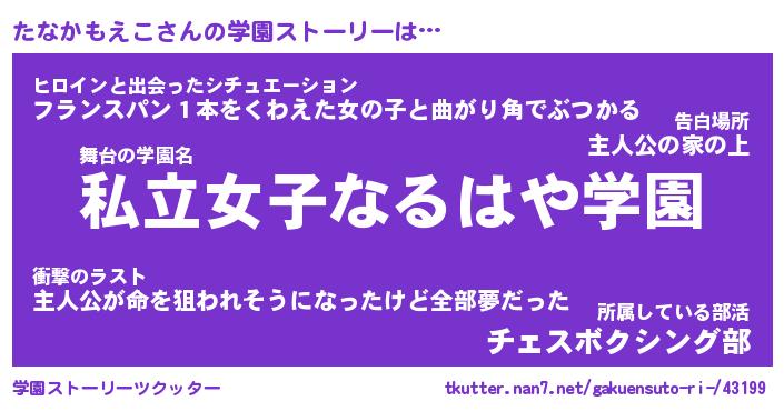 | ヒーロー風カッコイイあだ名 | 『スーパータナカモエコ』『幻影騎士タナ』 |