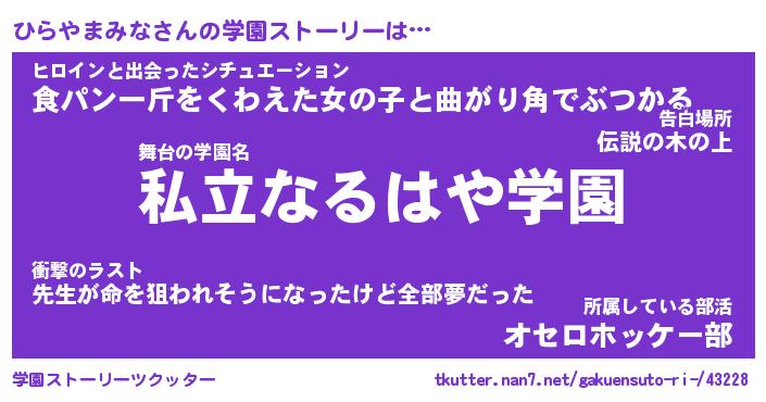 | 伝説のあだ名 | 『伝説のスナイパーひらやまみな』 |