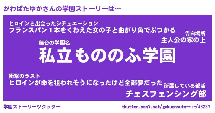 | 女子向けラノベタイトル風あだ名 | 『(仮)かわばたゆかのやんごとなき事情』 |