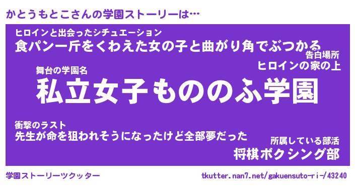 | 男性向けラノベタイトル風あだ名 | 『カトウモトコアートオンライン』 |