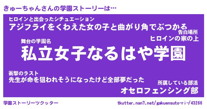 | 告白場所 先生の家の上 …「ふぃぎゅこ」 | 2月17日 06:24 |