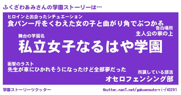 | ヒーロー風カッコイイあだ名 | 『スーパーフクザワアミ』『天弓騎士フク』 |