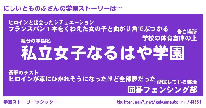 | 肩書あだ名 | 『にしいとものぶ御曹司』 |