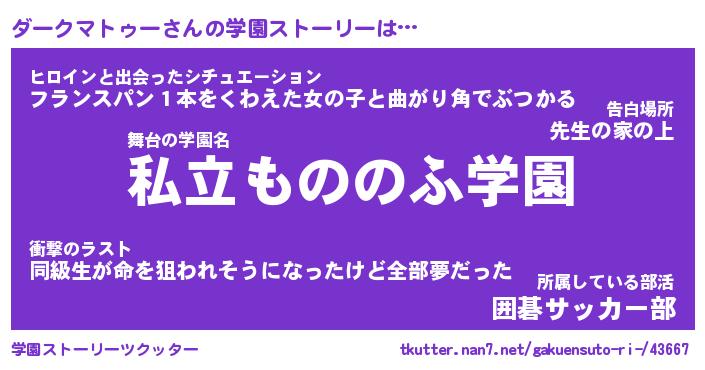 | 男性向けラノベタイトル風あだ名 | 『ダークマトゥーの憂鬱』 |