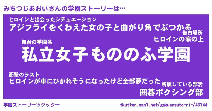 | 女子向けラノベタイトル風あだ名 | 『誰かこのみちつじあおいを説明してください! ~契約から始まるウェディング~』 |