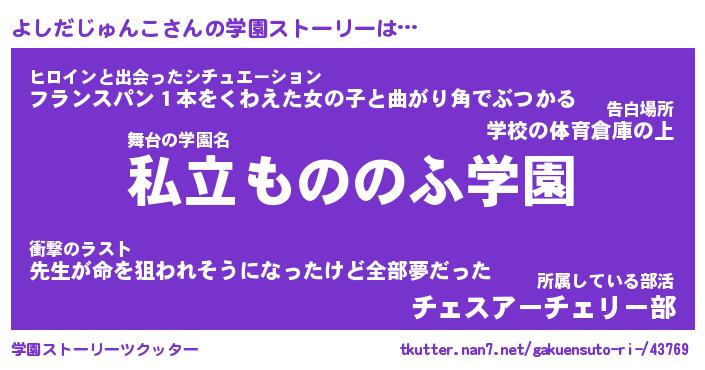 | 男性向けラノベタイトル風あだ名 | 『よしだじゅんこの憂鬱』 |