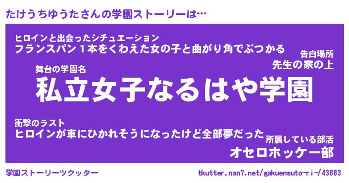 | 女子向けラノベタイトル風あだ名 | 『誰かこのたけうちゆうたを説明してください! ~契約から始まるウェディング~』 |