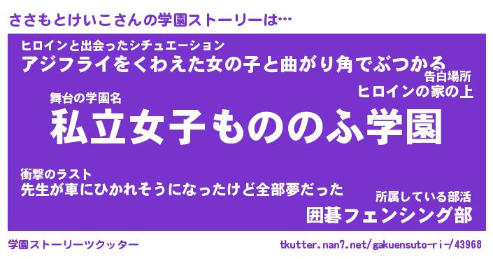 | 女子向けラノベタイトル風あだ名 | 『誰かこのささもとけいこを説明してください! ~契約から始まるウェディング~』 |
