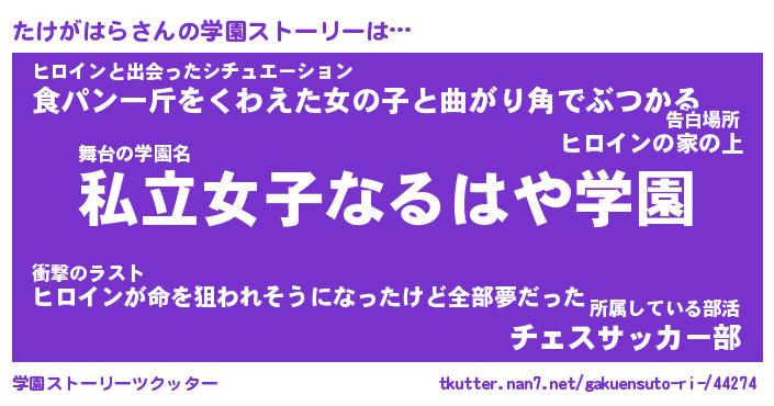| ファンタジー風あだ名 | 『タケフェル』『エターナルタケガハラー』 |
