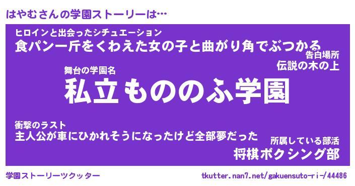 | 男性向けラノベタイトル風あだ名 | 『はやむの憂鬱』 |