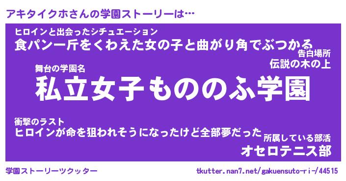 | ヒーロー風カッコイイあだ名 | 『スーパーアキタイクホ』『暗黒騎士アキ』 |