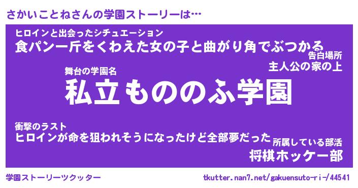 | 女子向けラノベタイトル風あだ名 | 『(仮)さかいことねのやんごとなき事情』 |