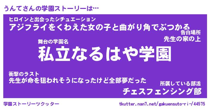 | 伝説のあだ名 | 『伝説のスナイパーうんて』 |
