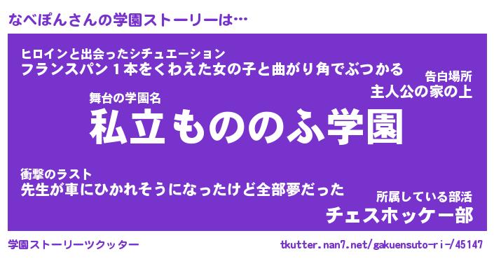 | 男性向けラノベタイトル風あだ名 | 『なべぽんの憂鬱』 |