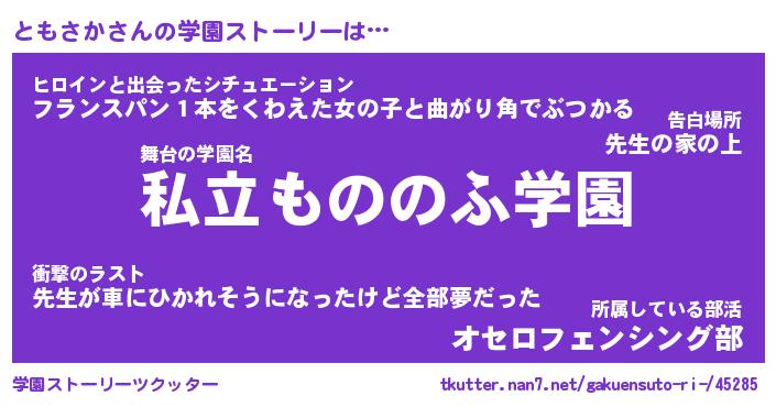 | 男性向けラノベタイトル風あだ名 | 『ともさかの憂鬱』 |