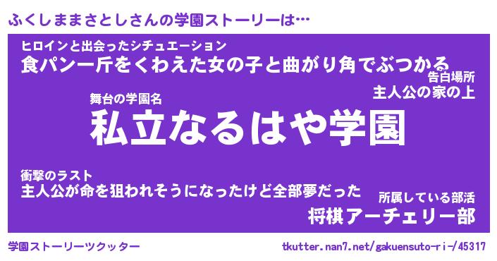 | 男性向けラノベタイトル風あだ名 | 『ふくしままさとしの憂鬱』 |