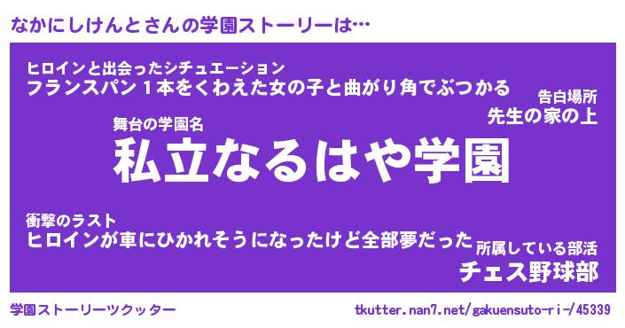 | 男性向けラノベタイトル風あだ名 | 『なかにしけんとの憂鬱』 |