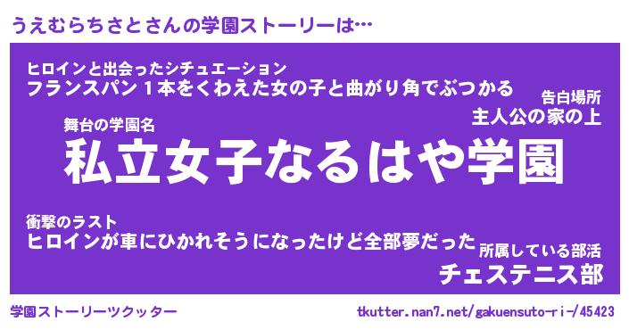 | 女子向けラノベタイトル風あだ名 | 『うえむらちさと姫と円卓の騎士』 |