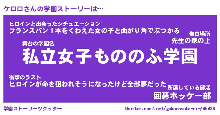 | ファンタジー風あだ名 | 『ケロフェル』『エターナルケロロー』 |