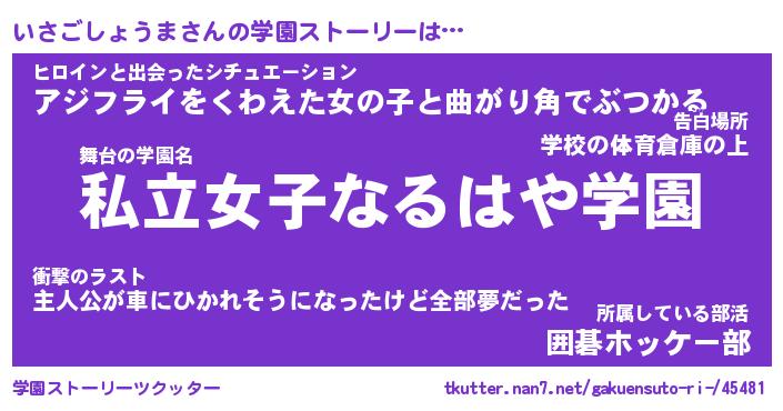 | 男性向けラノベタイトル風あだ名 | 『イサゴショウマアートオンライン』 |