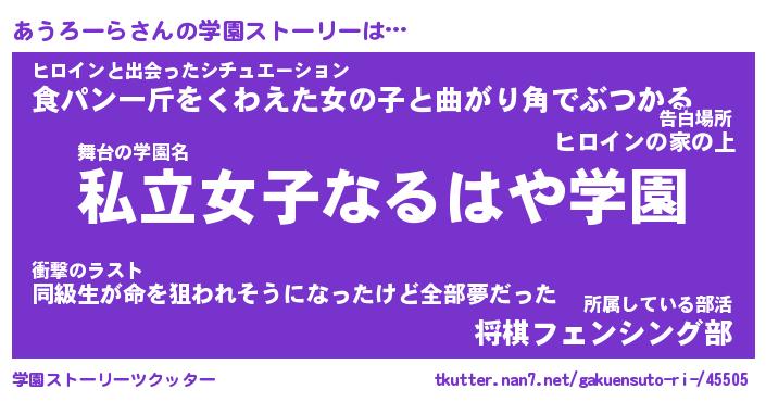 | 女子向けラノベタイトル風あだ名 | 『あうろーら姫と円卓の騎士』 |